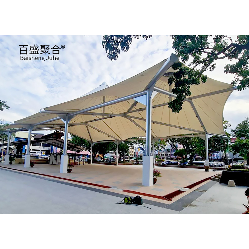 पीवीडीएफ पीटीएफई ईटीएफई सनस्क्रीन आउटडोर टेंट स्ट्रीट कैफे छाया छाता खिंचाव झिल्ली संरचना